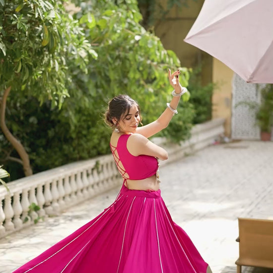 Lehenga Work : Plain And Lace Border With Gotta Patti Touch Up