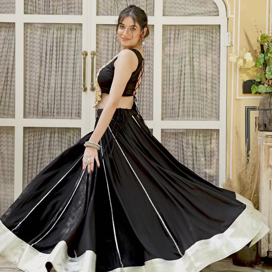 Lehenga Work : Plain And Lace Border With Gotta Patti Touch Up